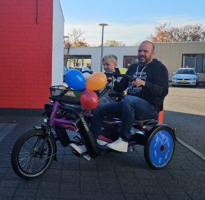Soms komen mooie initiatieven en aanvragen op een bijzondere manier samen. We kregen een aanvraag binnen voor een duofiets voor de afdeling kinderrevalidatie op locatie Adelante Valkenburg. Met deze duofiets kunnen therapeuten al in een vroeg stadium van het revalidatietraject samen met kinderen naar buiten. Het doel: meer activiteit en meer plezier. Bovendien sluit dit initiatief aan bij een landelijke beweging om kinderen tijdens opname meer te activeren. Rond dezelfde tijd werden we verrast door een bijzondere actie van Quinn, een jongen van 10 jaar met een enorm groot hart. Na het zien van een reclame van Kika wist hij: ik wil iets doen voor zieke kinderen. Zijn keuze viel op Stichting Vooruit. Om geld op te halen zette hij afgelopen zomer een actie op touw, wandelde tientallen kilometers en beklom zeker 10 keer de steile trappen van SnowWorld om sponsorgeld op te halen. Het leek ons dan ook een mooi idee om het door Quinn ingezamelde bedrag te bestemmen voor de aanvraag van de duofiets. Samen met een aanvulling van de Hersenstichting NL en Stichting Vooruit kon de fiets worden aangeschaft. Afgelopen week was het zover: de duofiets werd geleverd. En wie kon die symbolisch beter binnenrijden dan Quinn zelf? Een prachtig moment. Wij zijn iedereen enorm dankbaar voor hun inzet. Dankzij hen kunnen kinderen in Valkenburg nu heerlijk in de buitenlucht nog actiever werken aan hun herstel.